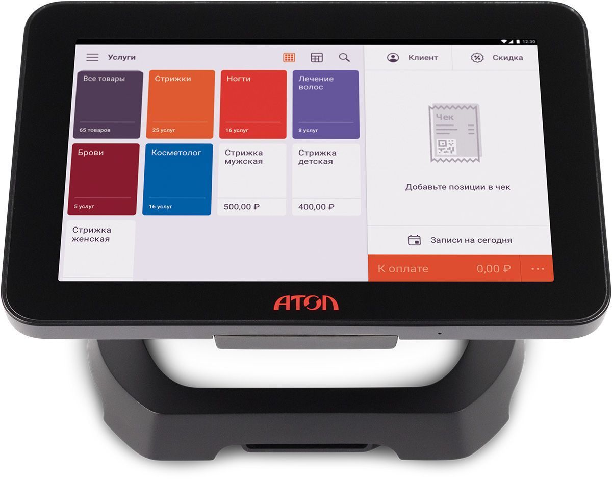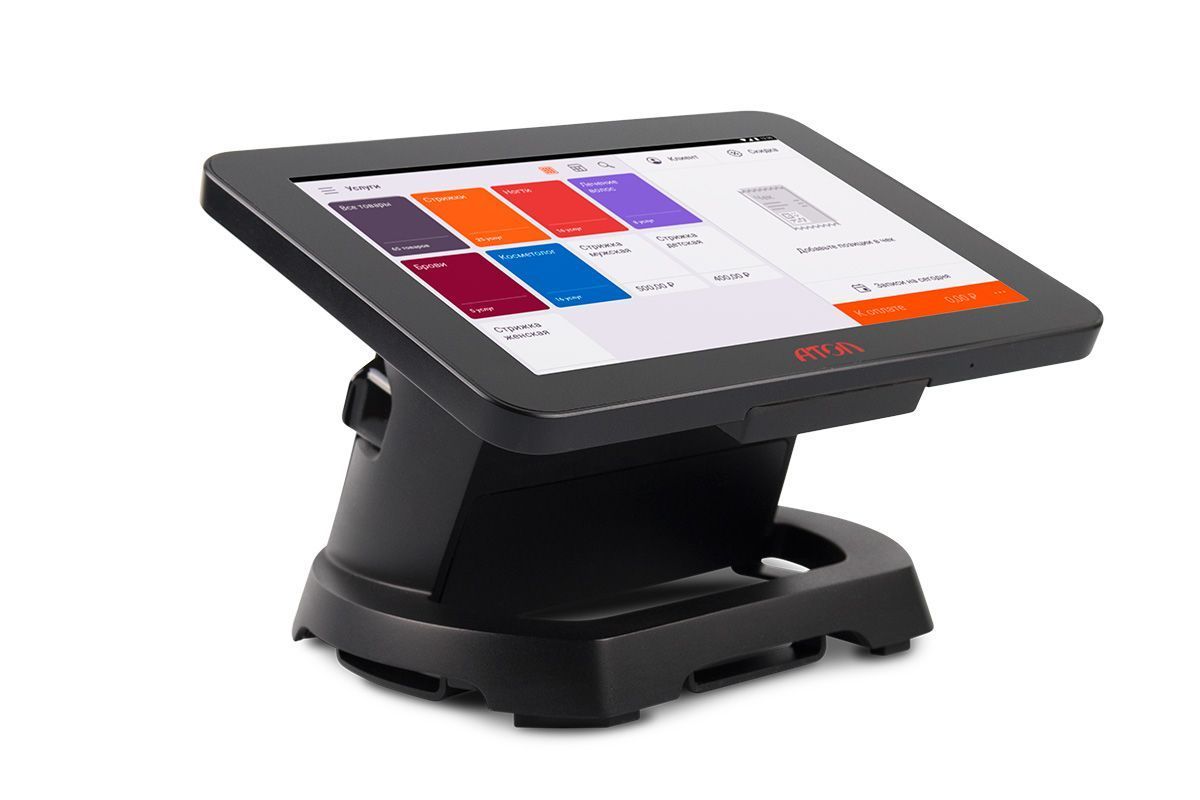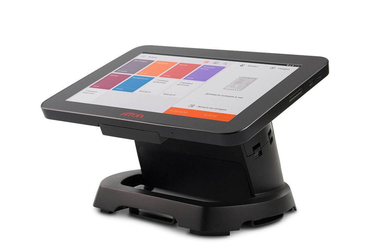Модель создана для сферы услуг, но можно использовать её и для других видов бизнеса. У этого смарт-терминала 8-дюймовый экран и принтер чеков с автоотрезом — он позволяет быстрее обслуживать клиентов, а чеки получаются ровные и аккуратные. Пяти USB-разъемов достаточно для подключения любой периферии